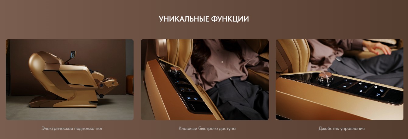 Это кресло — настоящая находка! Оно действительно оправдало свою цену. Массаж с множеством настроек, который охватывает не только спину, но и шейку, ноги — все, что нужно для восстановления. В кресле удобно сидеть, а различные режимы позволяют настроить интенсивность массажа под себя. Отличный дизайн и простота в использовании. Очень доволен покупкой и могу смело рекомендовать тем, кто ищет качественное массажное кресло для дома!