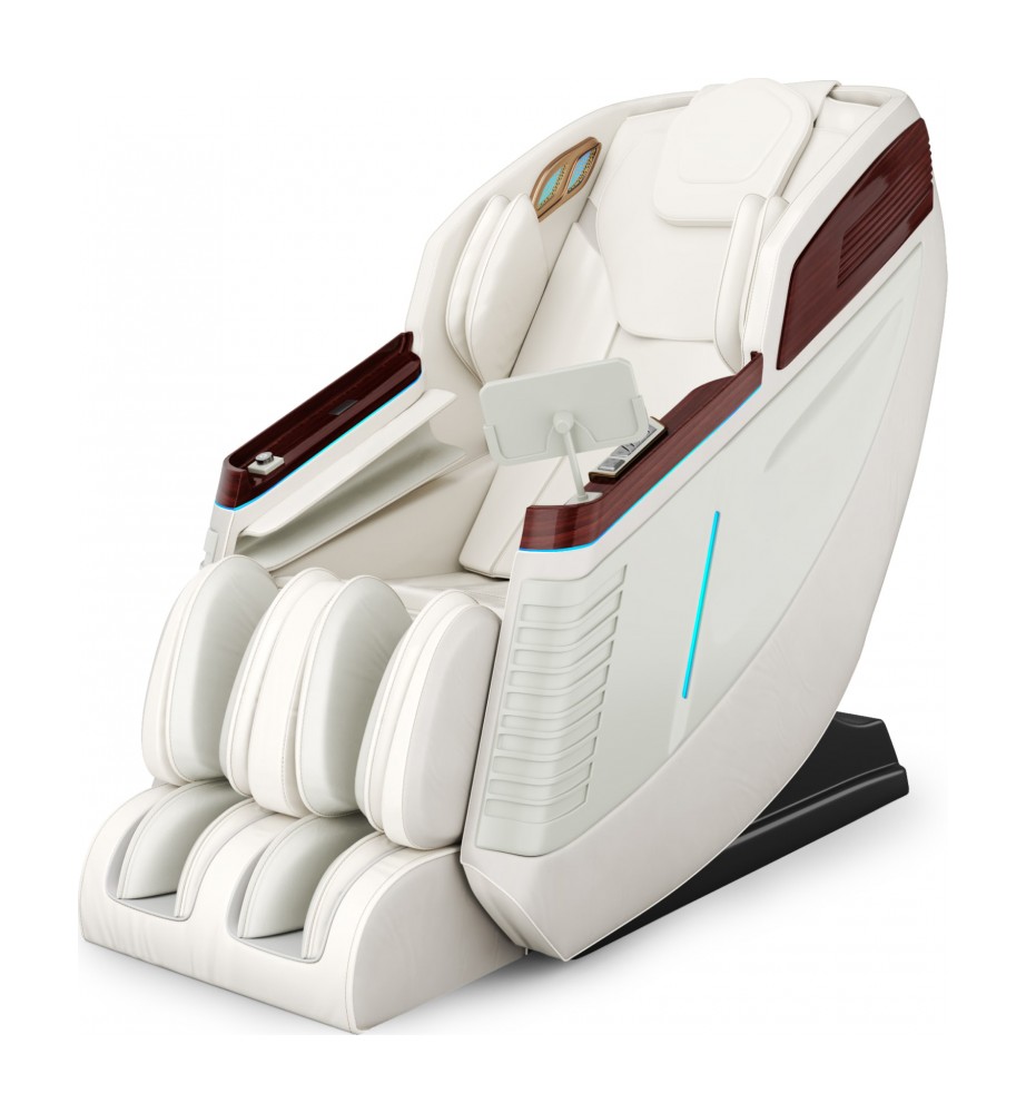 - Возможности. Автоматическое обнаружение и точная настройка положения плеч, изгибов тела и массажных акупунктурных точек, аэромассаж верхней части тела, функция аэромассажа ладоней (4 воздушных массажера), функция аэромассажа рук ((4 воздушных массажера), 3 уровня интенсивности давления воздуха. Аэромассаж нижний части тела: функция аэромассажа икр (12 воздушных массажера) + 3 уровня интенсивности давления воздуха. Воздушные массажеры для левой и правой ладони оснащены функциями ударного массажа и магнитной терапии. Функция роликового массажа ступней состоит из трех комплектов валиков, которые  массируют пальцы и ступни ног, своды ступней, скорость регулируется тремя положениями. Скребковый массаж с роликами для ног, телескопическая функция для упругих ног.